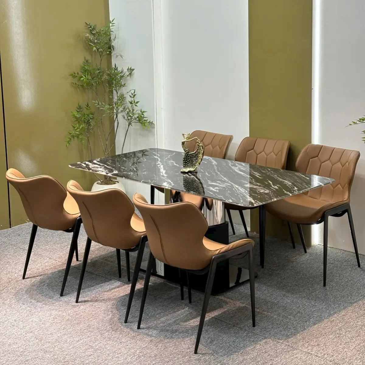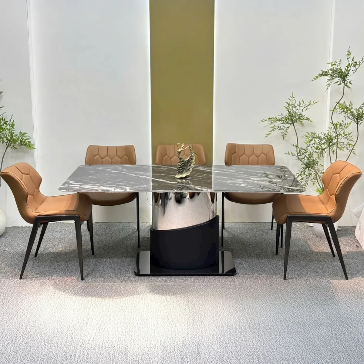 Bộ Bàn Ăn Mặt Đá 6 Ghế Bọc Da Chân Inox Hiện Đại – Sang Trọng Cho Không Gian Phòng Ăn