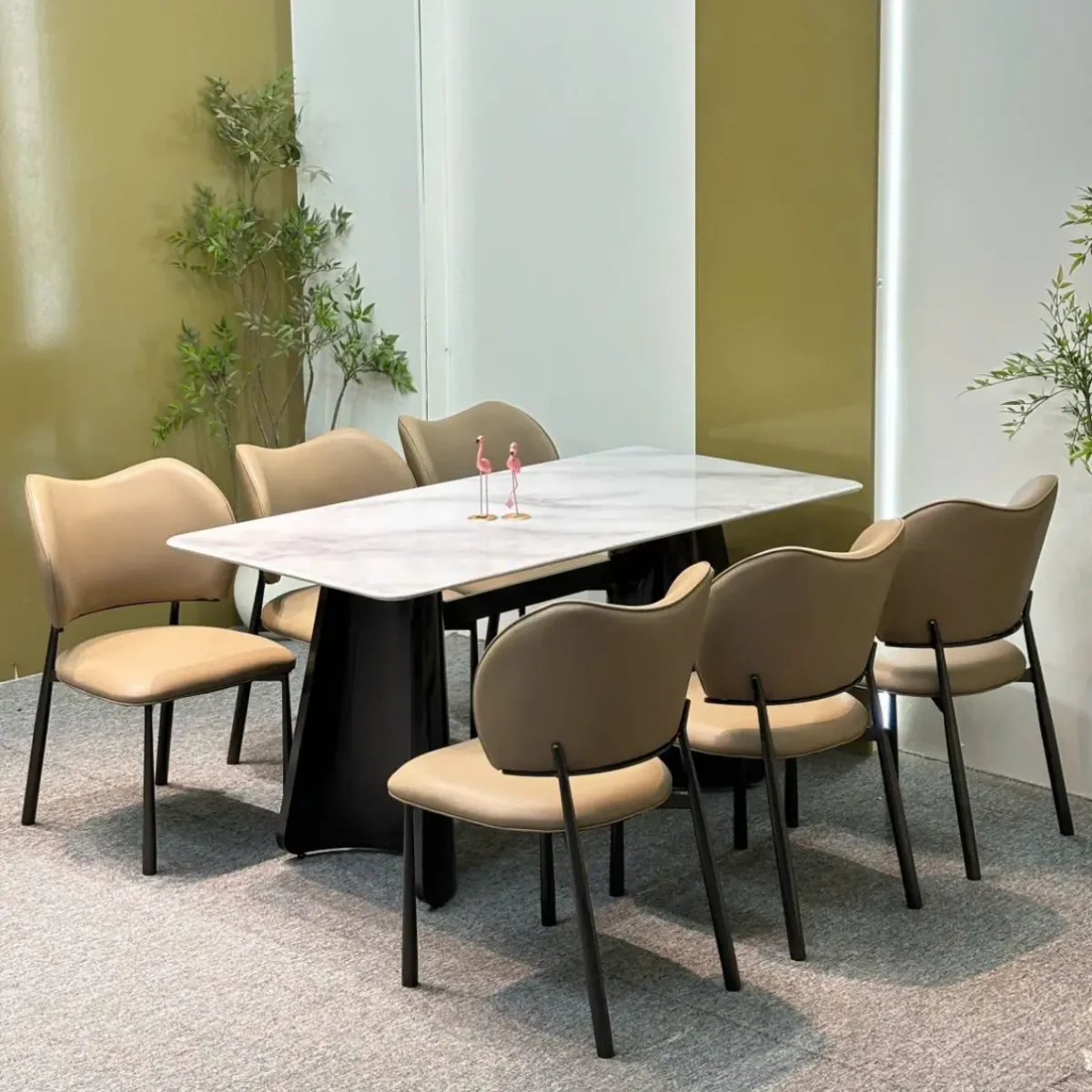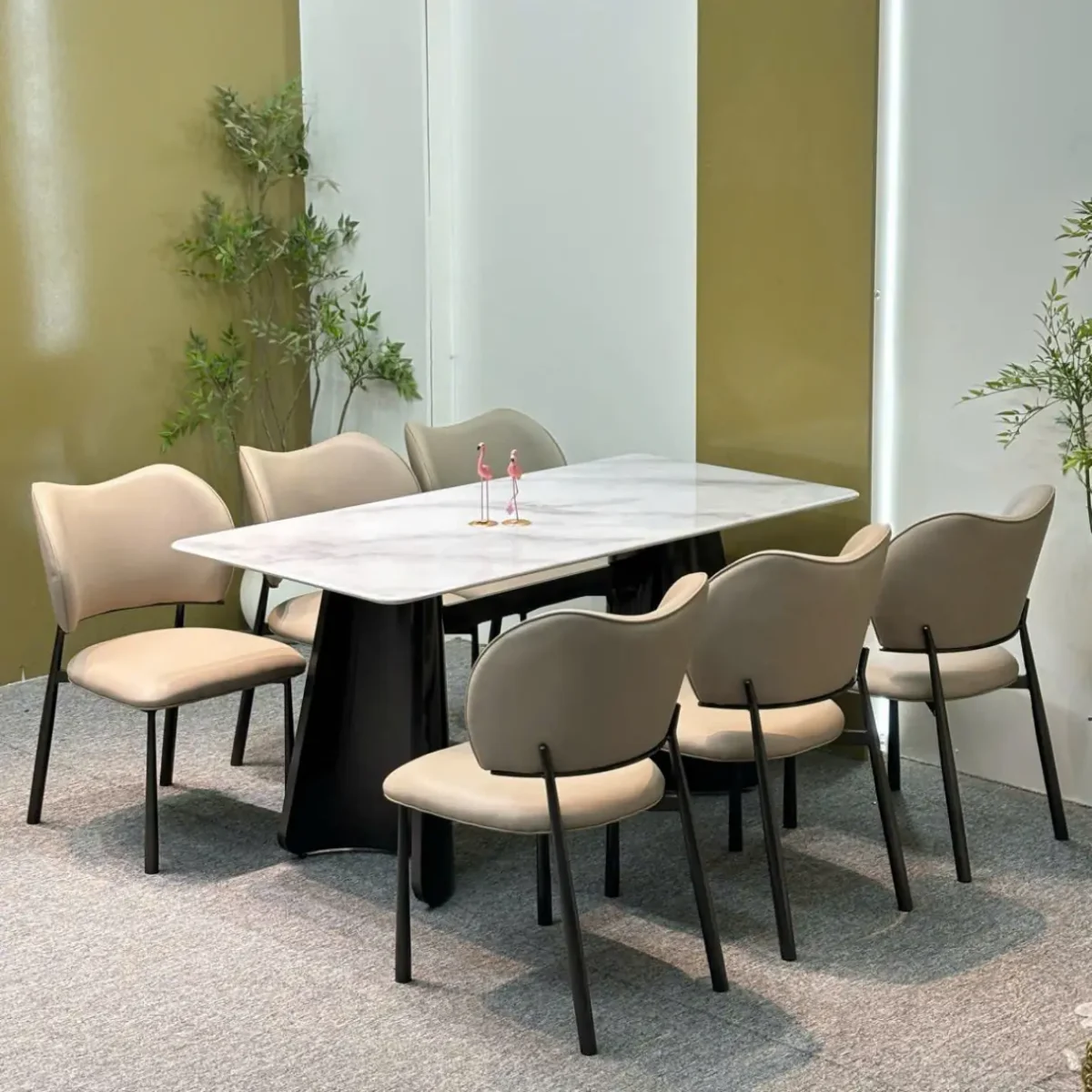 Bộ Bàn Ăn Mặt Đá 6 Ghế Chân Chữ V Cong Hiện Đại – SP16307