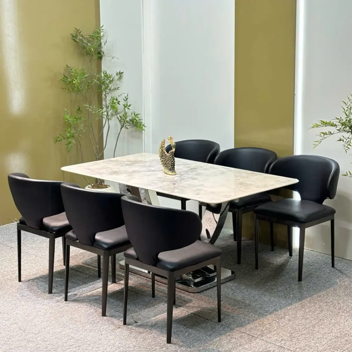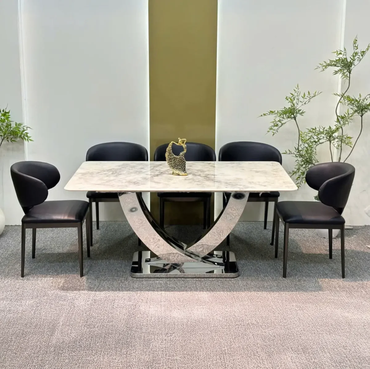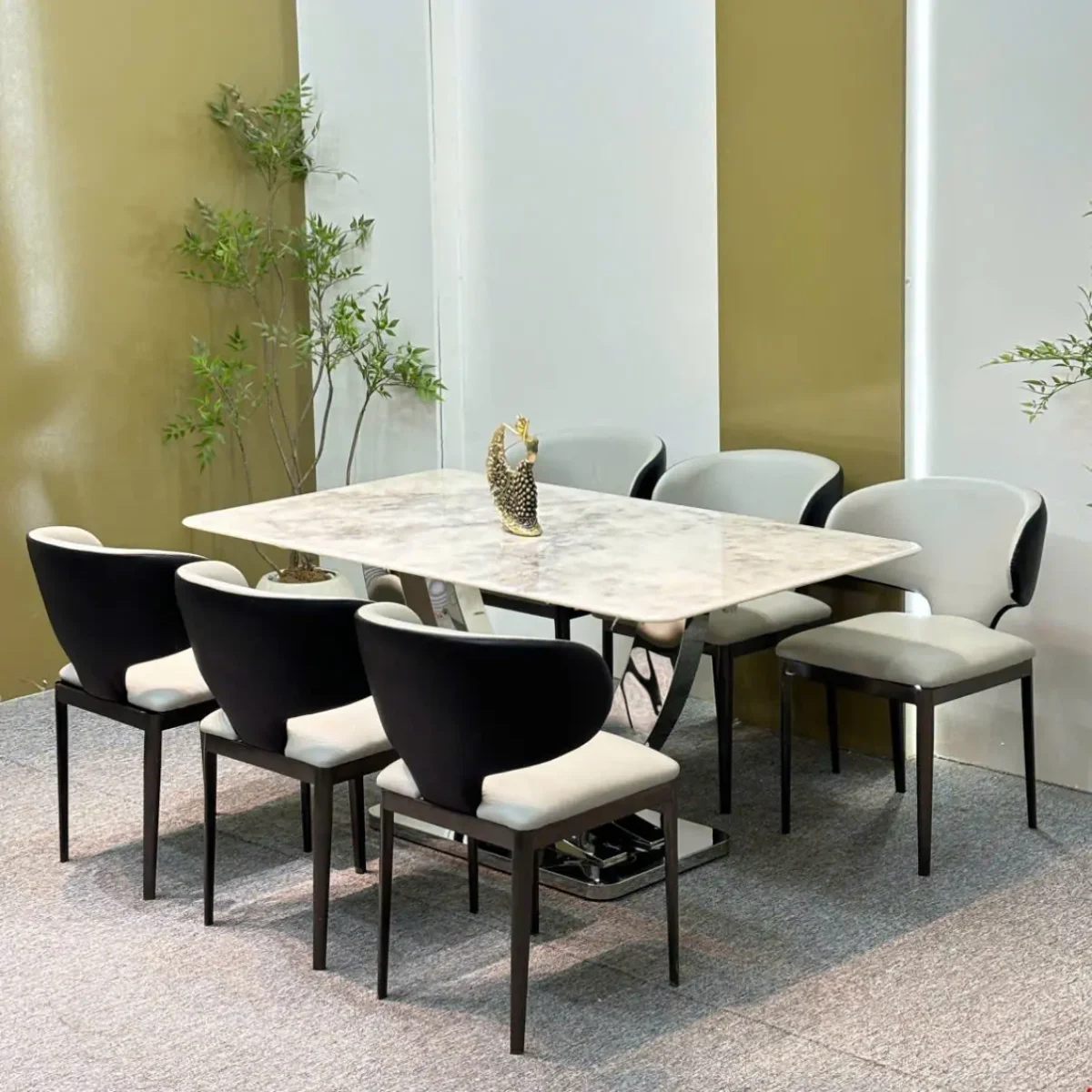 Bộ Bàn Ăn Mặt Đá 6 Ghế Chân Inox Vòng Cung – Thiết Kế Hiện Đại, Sang Trọng