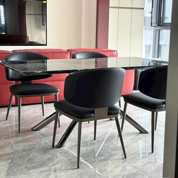 Bộ bàn ăn mặt đá 6 ghế mang lại không gian dùng bữa sang trọng và tiện nghi cho gia đình. Thiết kế hiện đại kết hợp vật liệu cao cấp giúp phòng ăn trở nên tinh tế và ấm cúng hơn.