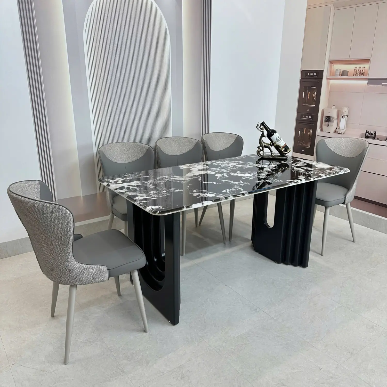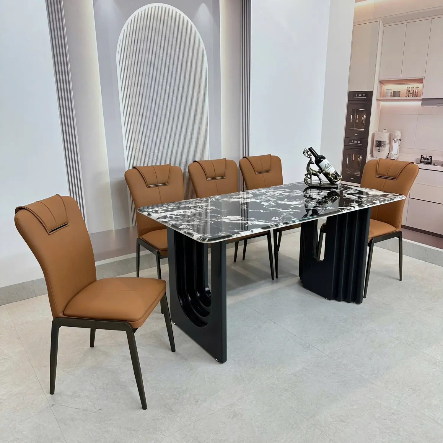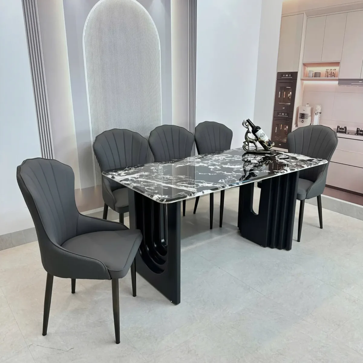 Bộ Bàn Ăn Mặt Đá Chân Chữ U Hiện Đại – Sang Trọng & Tinh Tế