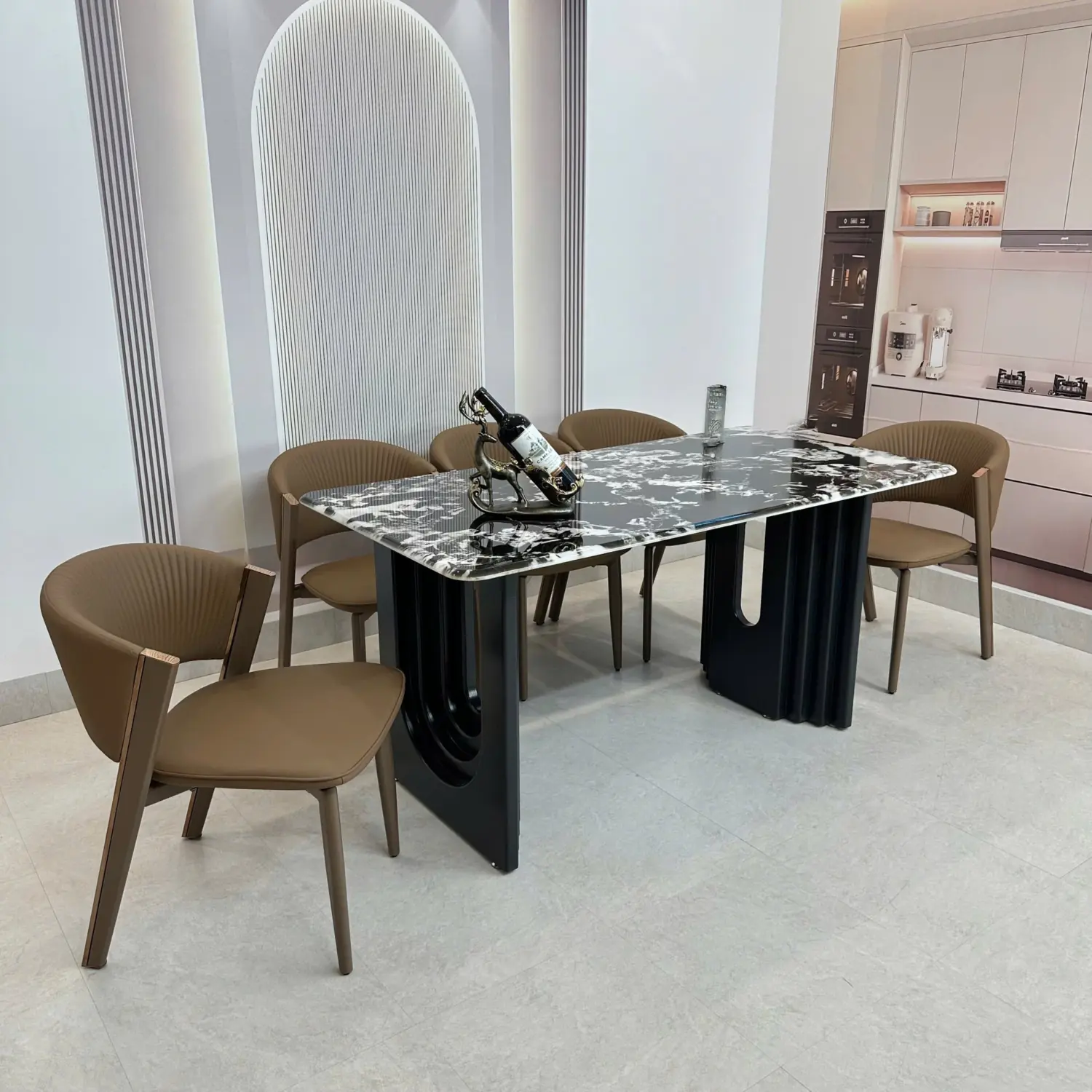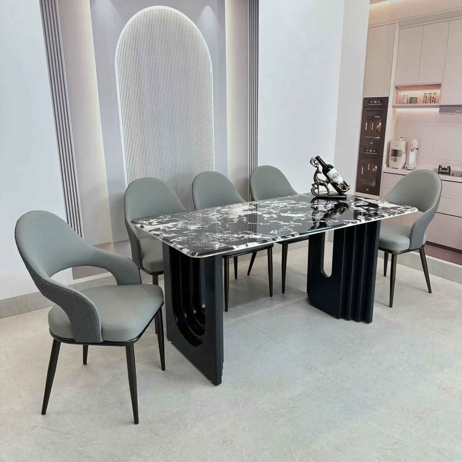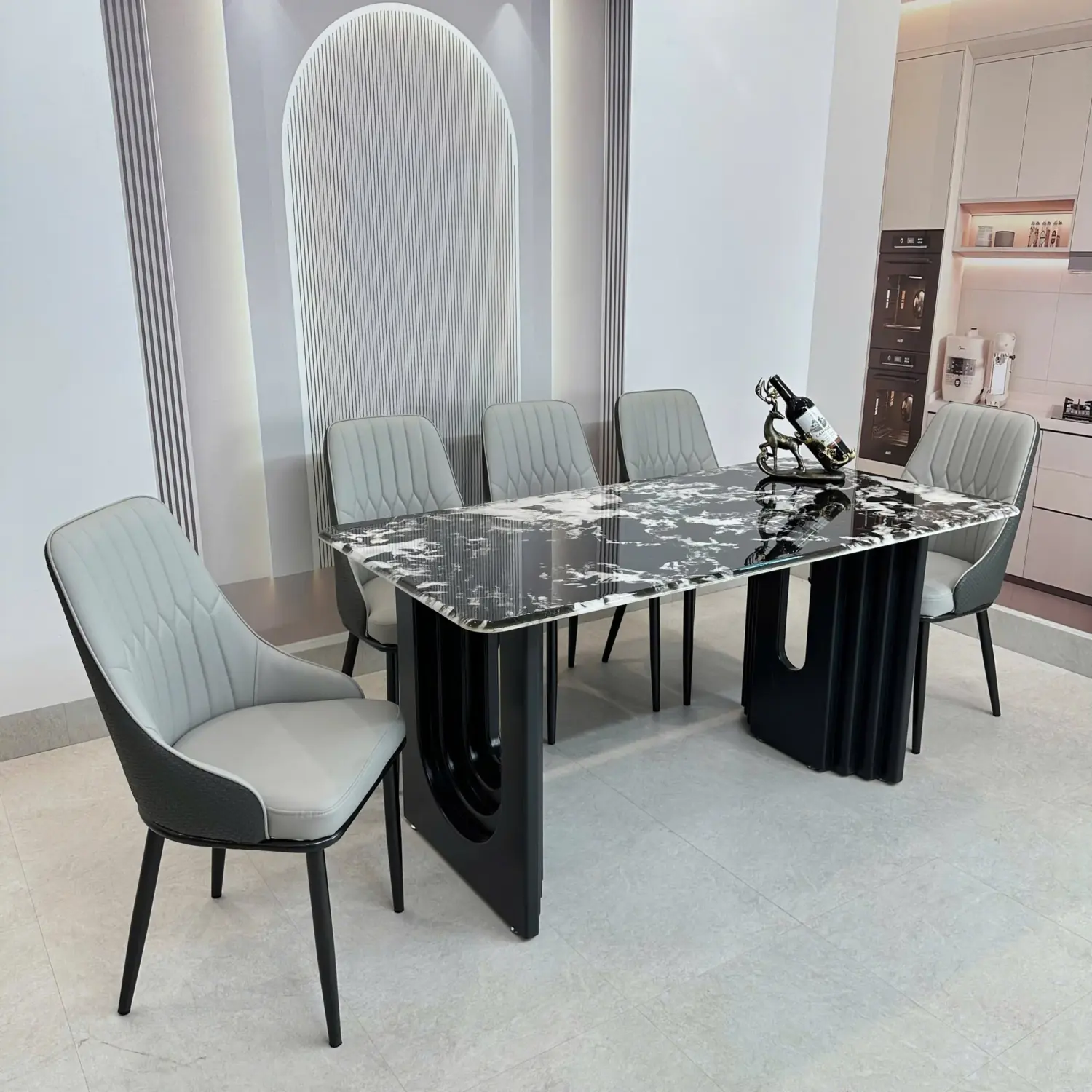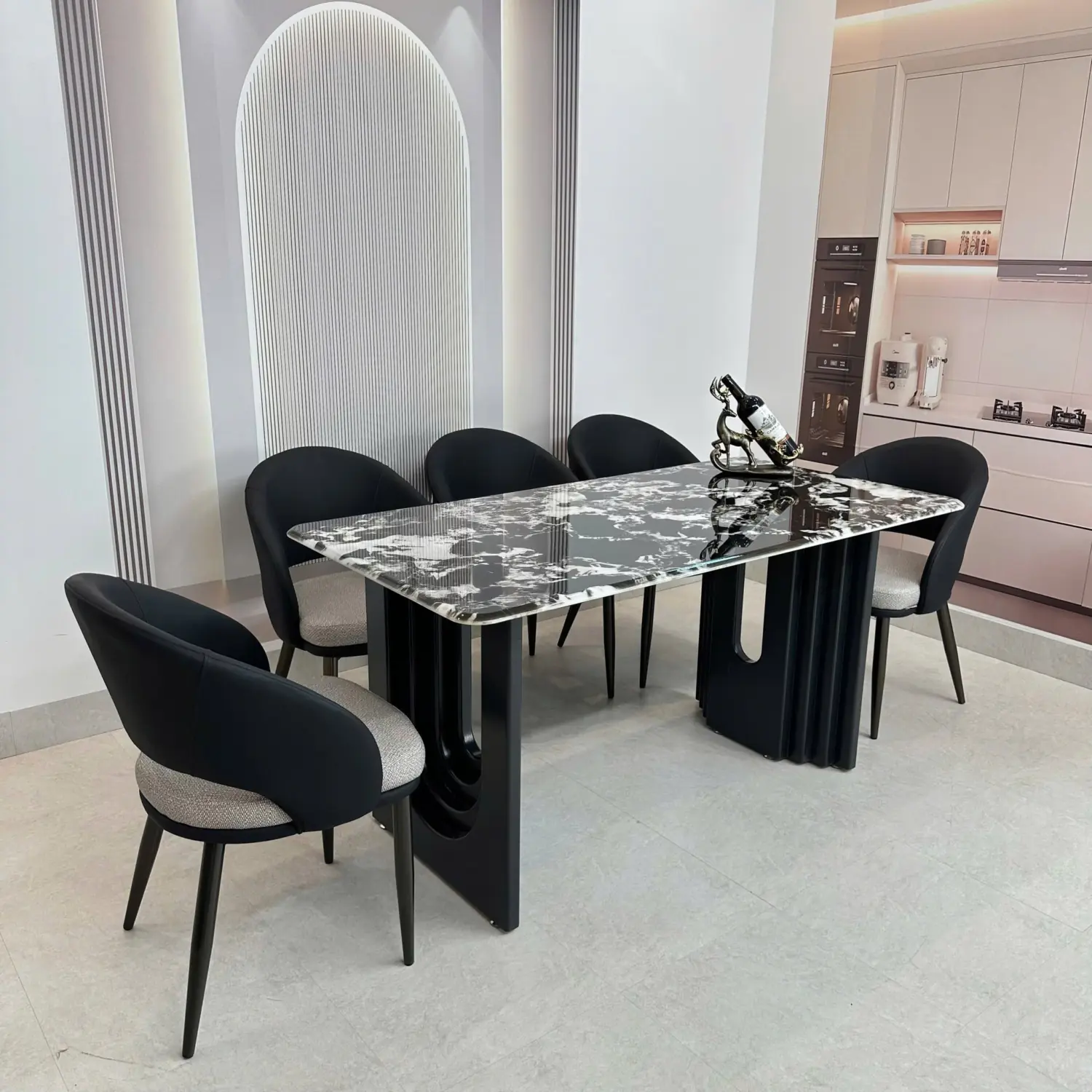 Bộ Bàn Ăn Mặt Đá Chân Chữ U Hiện Đại – Sang Trọng & Tinh Tế