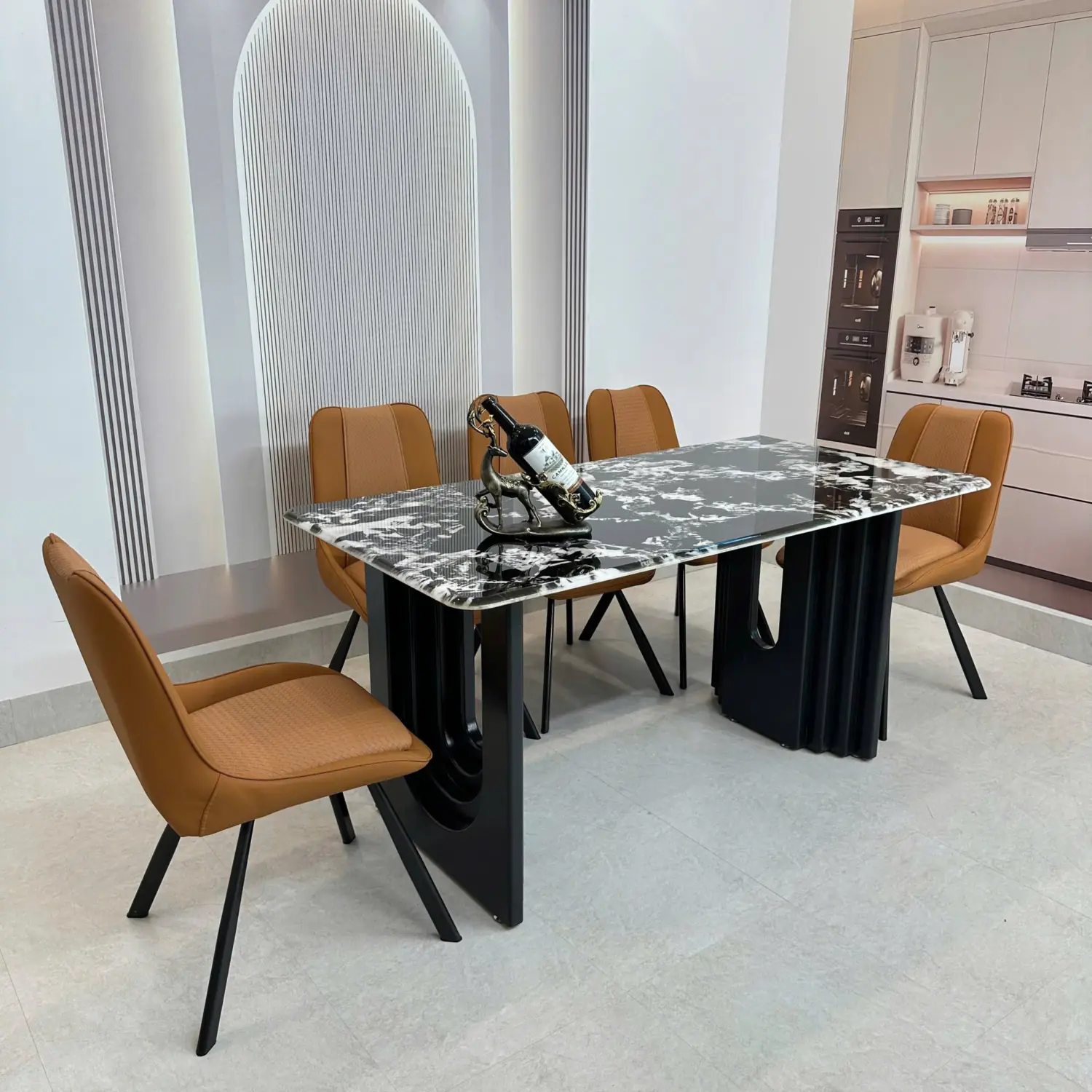 ✔ Chân bàn chữ U hiện đại: Thiết kế chắc chắn, tạo cảm giác cân đối và sang trọng, dễ phối cùng ghế ăn bọc da cùng tone màu.