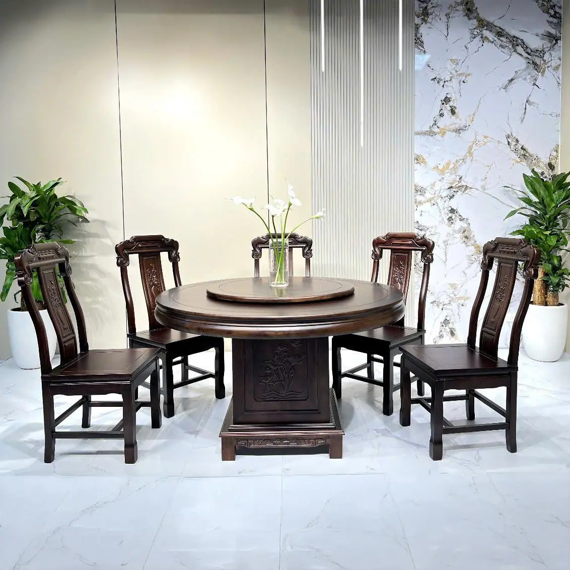 Bộ Bàn Ăn Tròn Gỗ Gụ Nam Phi Mặt Đá Nhập Khẩu Cao Cấp – Sang Trọng & Đẳng Cấp Không Gian Sống