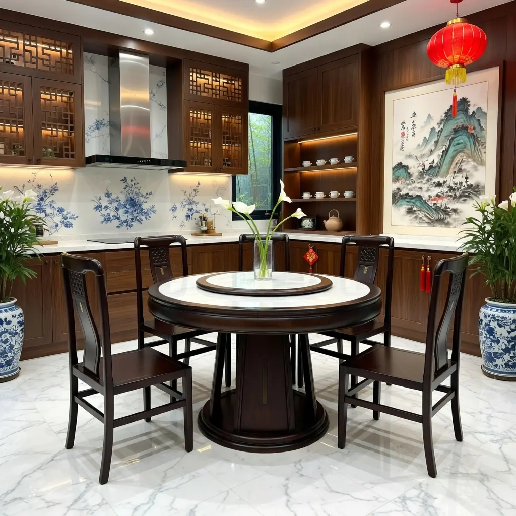 Bộ Bàn Ăn Tròn Xoay 6 Ghế Gỗ Gụ Nhập Khẩu – Vẻ Đẹp Sang Trọng Đậm Chất Á Đông