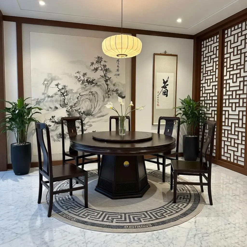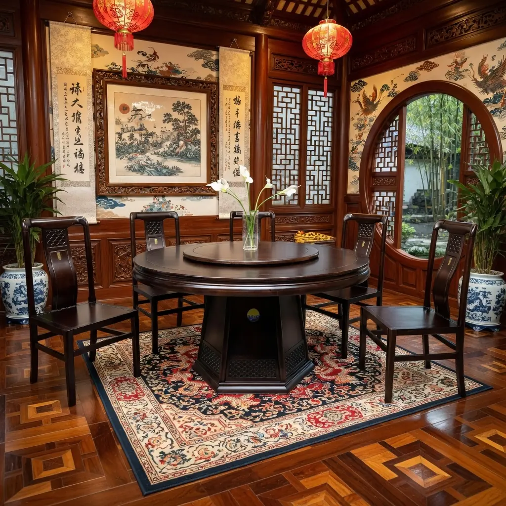 Bộ Bàn Ăn Tròn Xoay 6 Ghế Gỗ Tự Nhiên – Đậm Chất Cổ Điển Trung Hoa