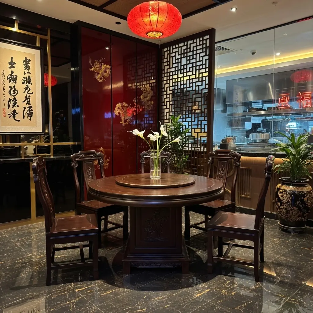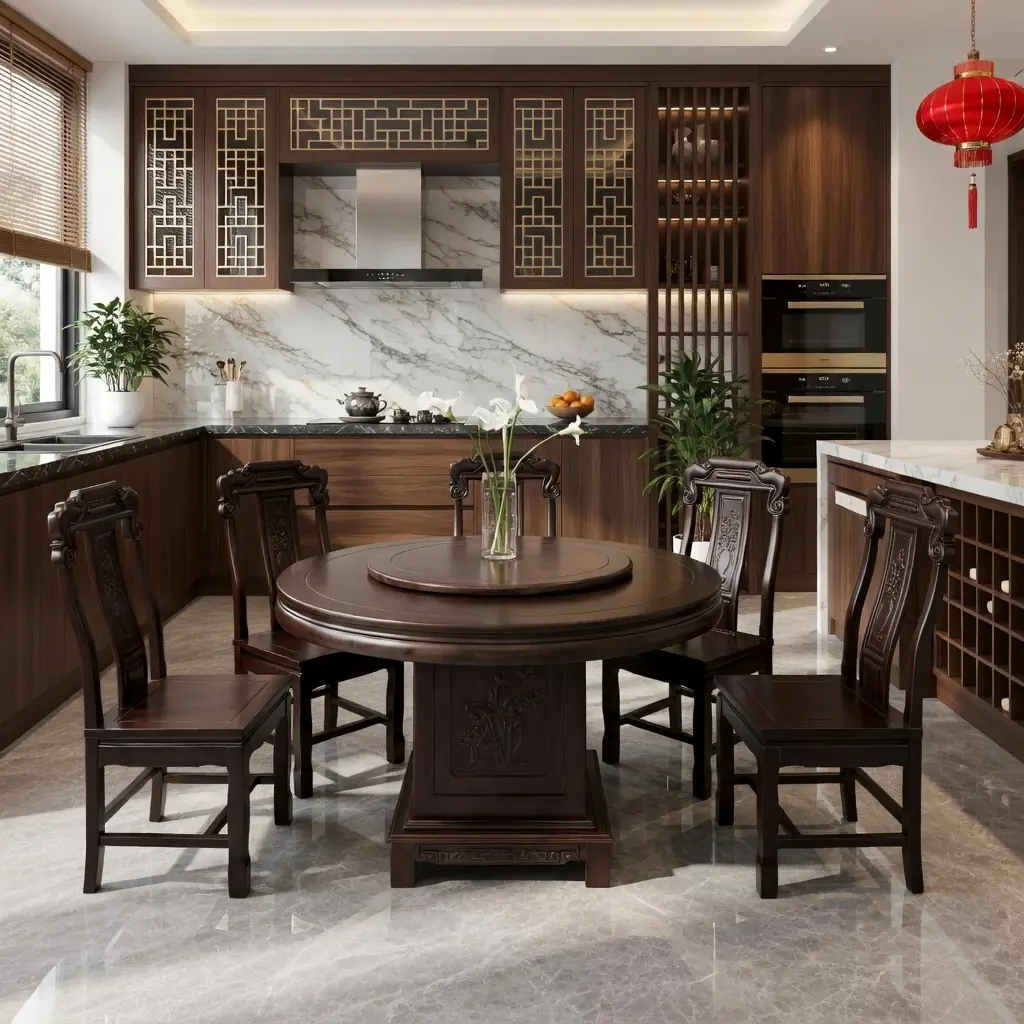 Bộ Bàn Ăn Tròn Xoay 6 Ghế Gỗ Gụ Nhập Khẩu – Vẻ Đẹp Sang Trọng Đậm Chất Á Đông