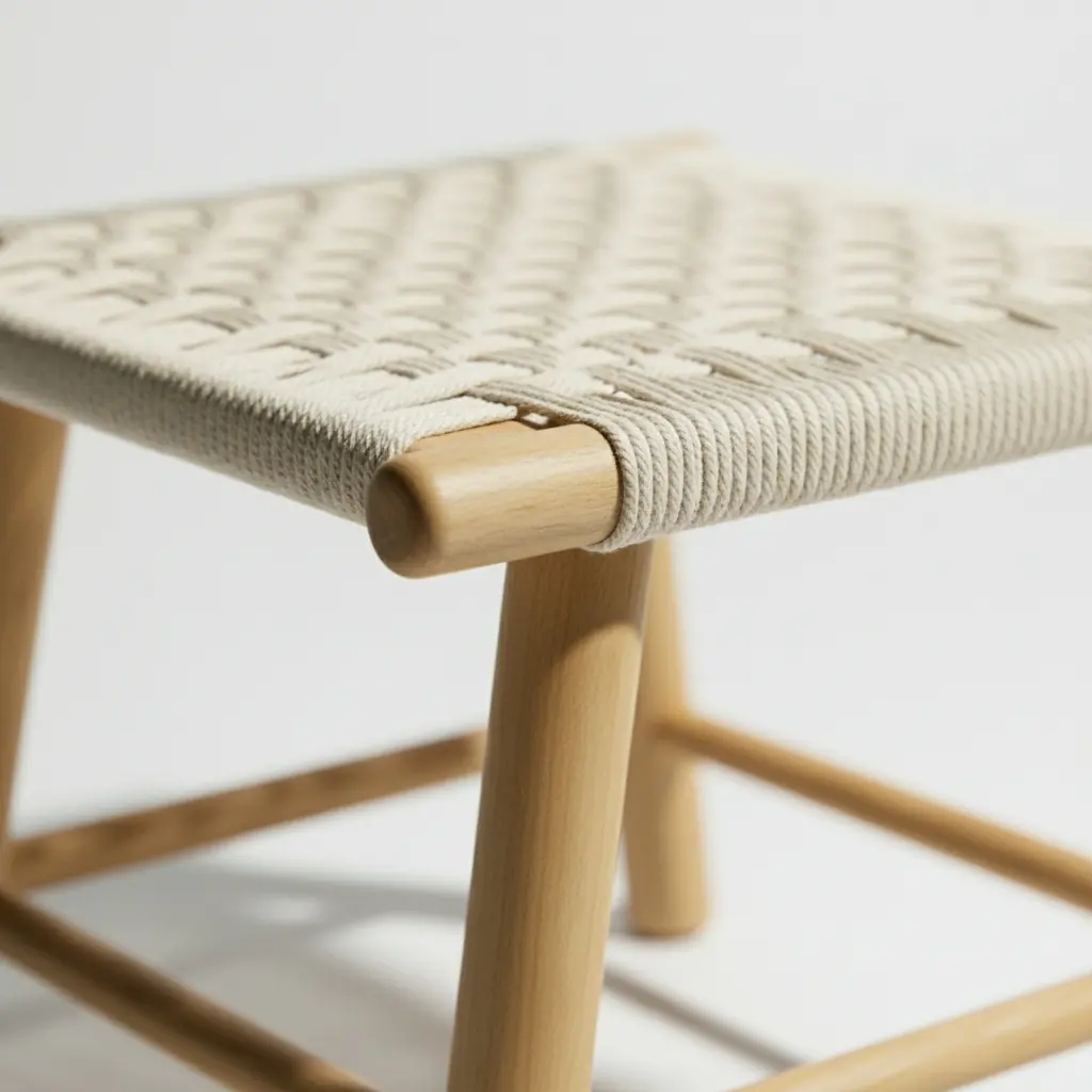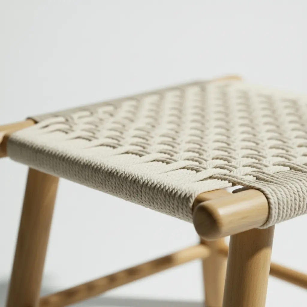 Đôn Ghế Khung Gỗ Tự Nhiên Đan Dây Vải Hiện Đại Hàng Xuất Khẩu – SP18162