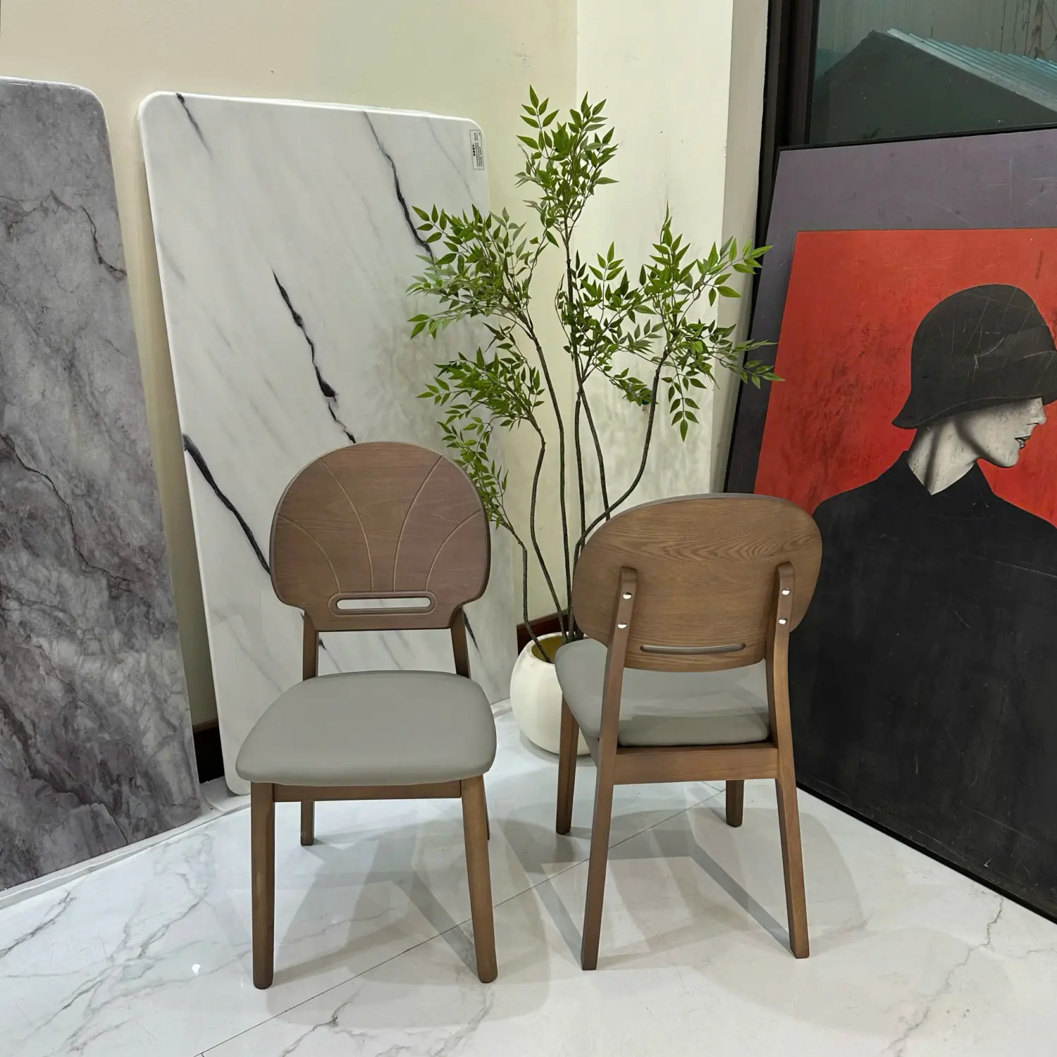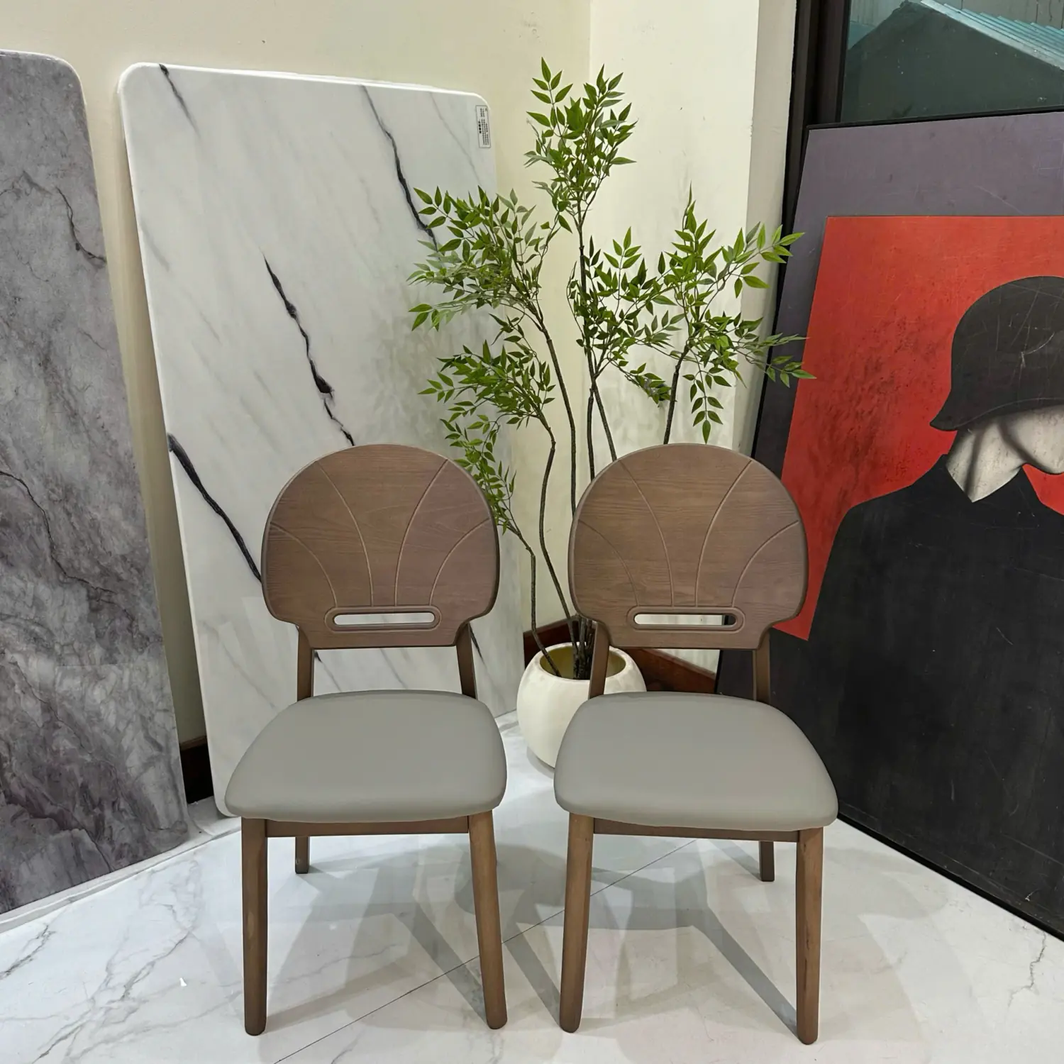 Ghế ăn SP10023 được chế tác từ gỗ sồi tự nhiên cao cấp, kết hợp cùng đệm ngồi bọc da PU mềm mại, mang lại sự thoải mái tối đa cho người sử dụng. Thiết kế lưng bo tròn duyên dáng, khắc họa tiết đường cong tinh tế, độc đáo giúp ghế trở thành điểm nhấn sang trọng trong không gian phòng ăn.