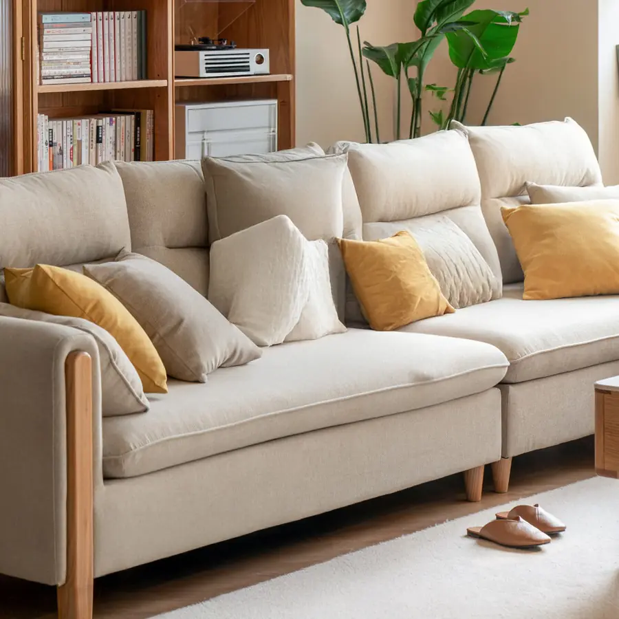 Màu kem nhã nhặn dễ phối với bàn trà hoặc đồ nội thất khác, tạo cảm giác sáng sủa và thanh lịch cho không gian phòng khách.