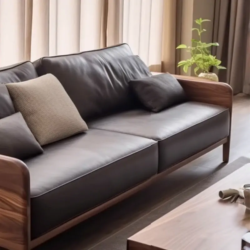 Ghế Sofa Gỗ Cao Cấp Đệm Da Êm Ái – Thanh Lịch, Sang Trọng Cho Phòng Khách Hiện Đại