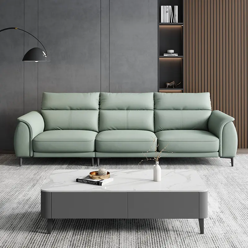 Mẫu sofa góc SP12133 mang phong cách châu Âu hiện đại, thiết kế chữ L tinh tế giúp tối ưu diện tích và tăng tính thẩm mỹ cho không gian phòng khách. Bề mặt bọc da cao cấp kết hợp tone màu xanh lục pastel nhẹ nhàng, mang lại cảm giác tươi mới và sang trọng.