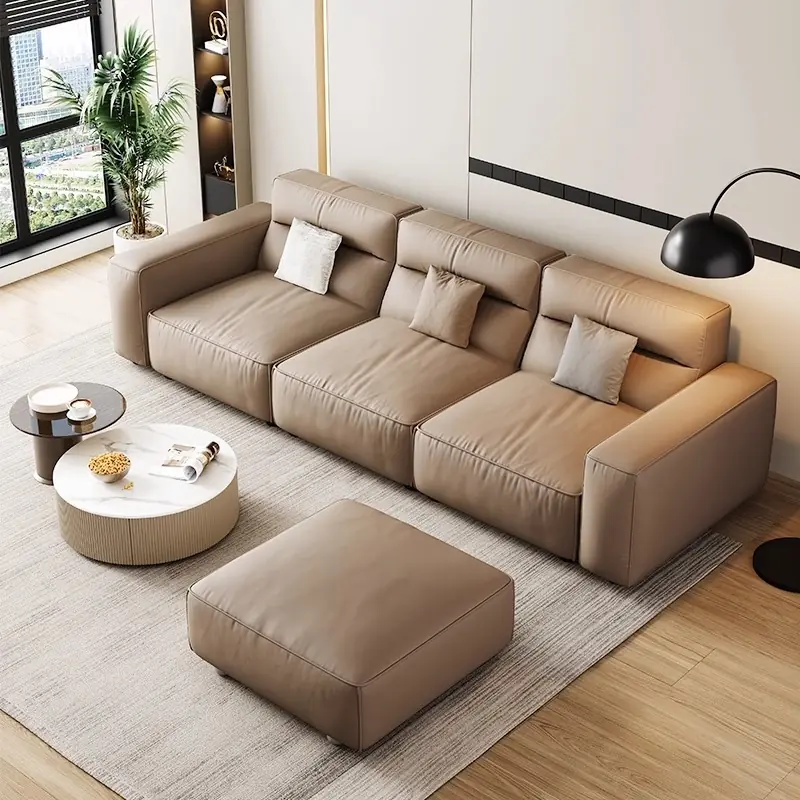 Thiết kế tập trung vào tỷ lệ hình khối và chất liệu bọc da cao cấp, tạo nên vẻ đẹp tinh tế nhưng không phô trương. Gam màu trung tính ấm áp giúp sofa dễ dàng hòa hợp với nhiều phong cách nội thất khác nhau, từ căn hộ chung cư hiện đại đến phòng khách nhà phố hay không gian tiếp khách cao cấp.
