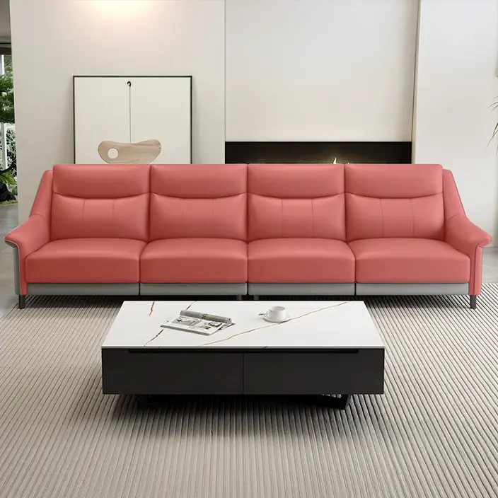 Mẫu ghế sofa văng bọc da hiện đại cao cấp gây ấn tượng với thiết kế tựa lưng cao, form dáng cân đối và đường may tinh tế. Tổng thể sofa mang phong cách hiện đại, sang trọng nhưng vẫn đảm bảo sự thoải mái khi sử dụng hằng ngày, phù hợp cho phòng khách chung cư, nhà phố hoặc không gian tiếp khách cao cấp.