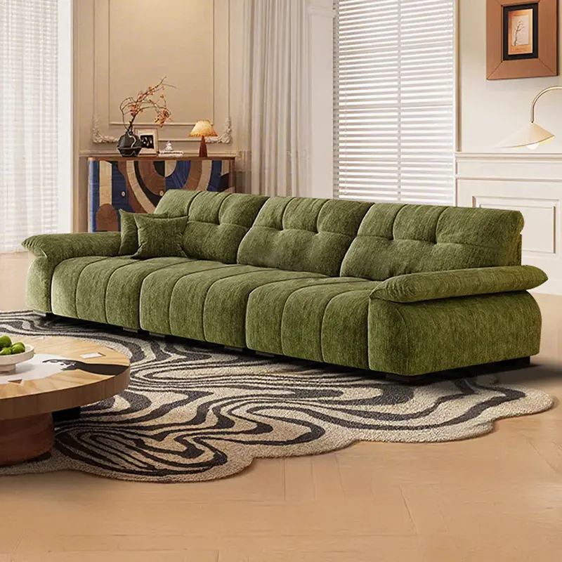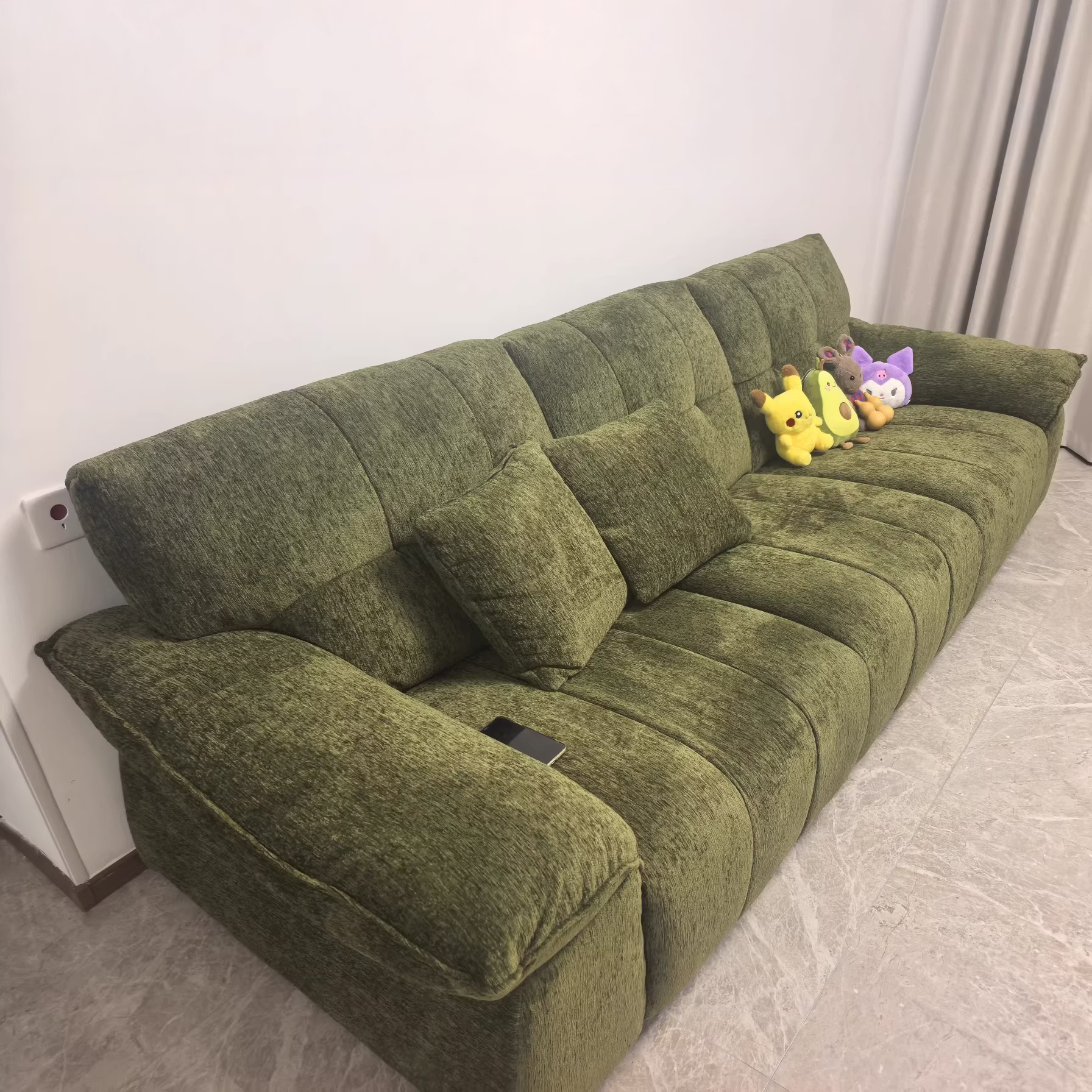 Tông màu xanh rêu cá tính giúp sofa trở thành điểm nhấn nổi bật trong không gian, đồng thời vẫn dễ phối với thảm, bàn trà và các món nội thất sáng màu.