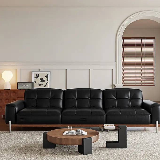 – Gam màu đen quyền lực, dễ phối với nhiều kiểu sofa da khác, tăng thêm sự đẳng cấp cho không gian sống.