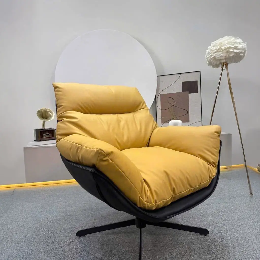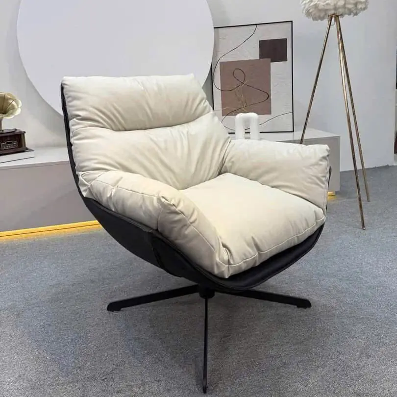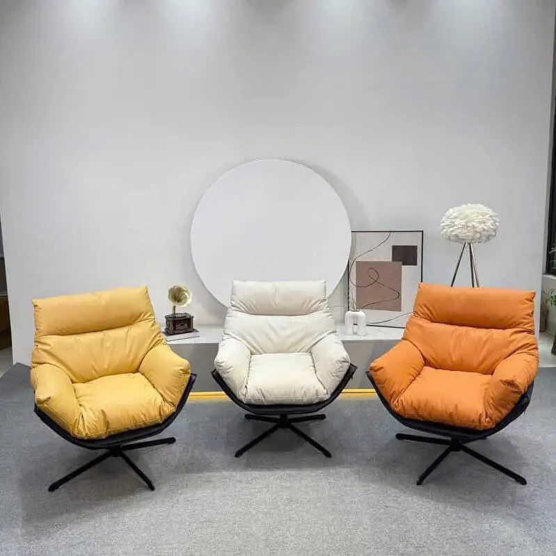 Mẫu ghế thư giãn bọc da xoay 360 mang phong cách hiện đại, tinh giản, là lựa chọn hoàn hảo cho không gian phòng khách, phòng ngủ hoặc góc đọc sách riêng tư. Với thiết kế ôm trọn cơ thể, lớp đệm dày và khả năng xoay linh hoạt, sản phẩm mang lại cảm giác thoải mái tuyệt đối sau những giờ làm việc căng thẳng.