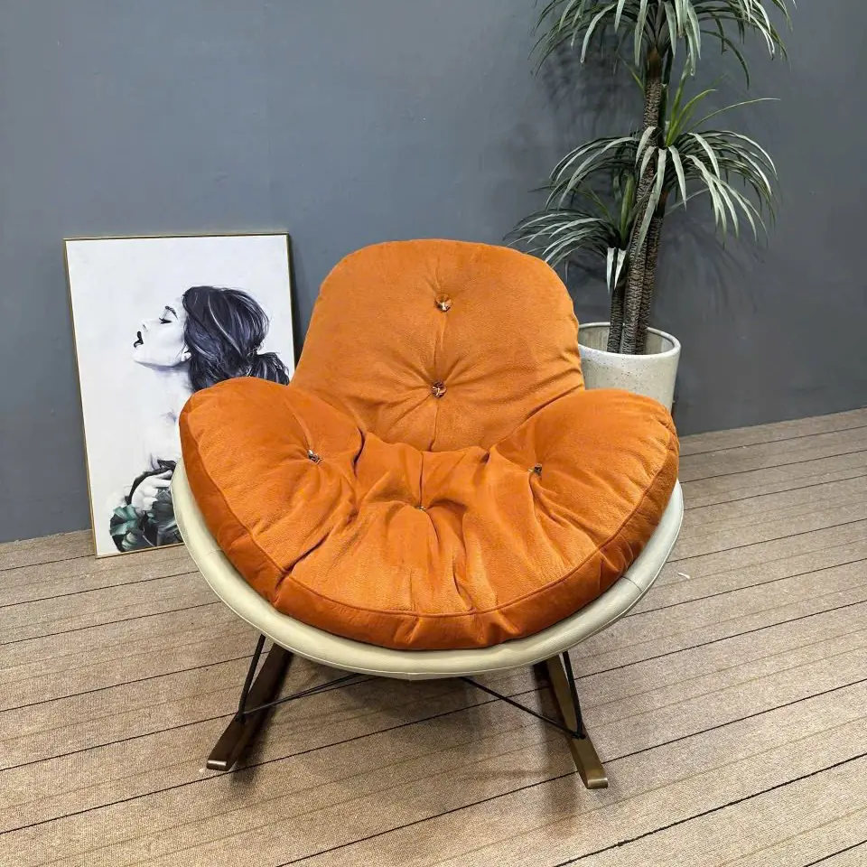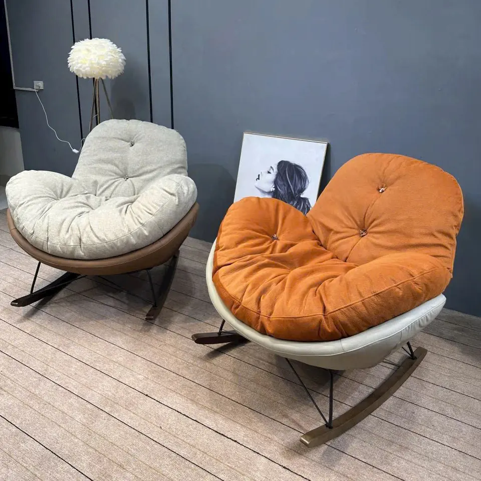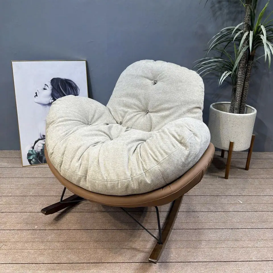 Ghế có dáng bập bênh nhẹ độc đáo, phần đệm ngồi siêu êm, phối hai chất liệu da và vải nỉ mang lại sự sang trọng nhưng vẫn trẻ trung. Mút D40 cao cấp giúp giữ dáng ghế ổn định, đảm bảo độ êm lâu dài. Rất phù hợp đặt tại góc đọc sách, thư giãn, xem phim hoặc không gian chill riêng tư.