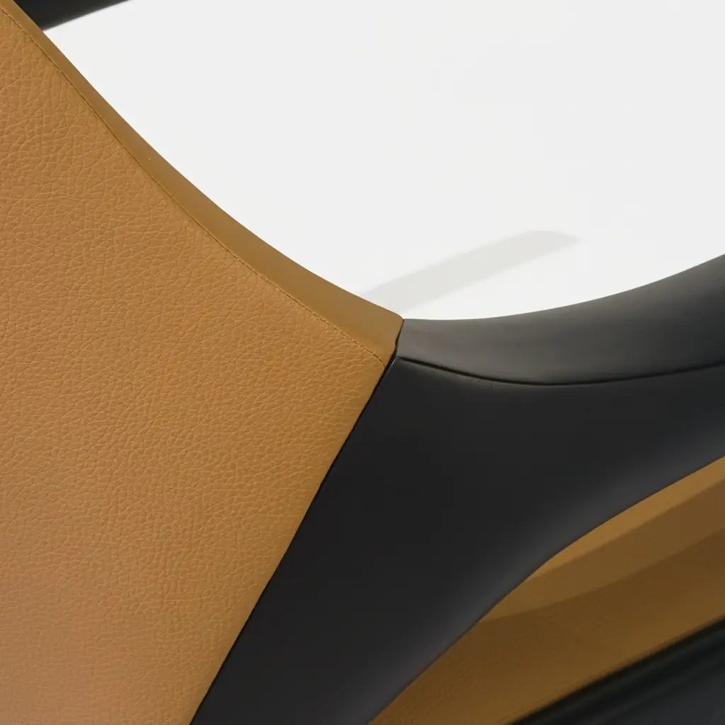 Ghế được bọc da cao cấp với bề mặt mềm mại, mang lại cảm giác êm ái khi sử dụng. Chất liệu da không chỉ tăng tính thẩm mỹ mà còn dễ dàng vệ sinh, giúp sản phẩm luôn giữ được vẻ đẹp như mới.