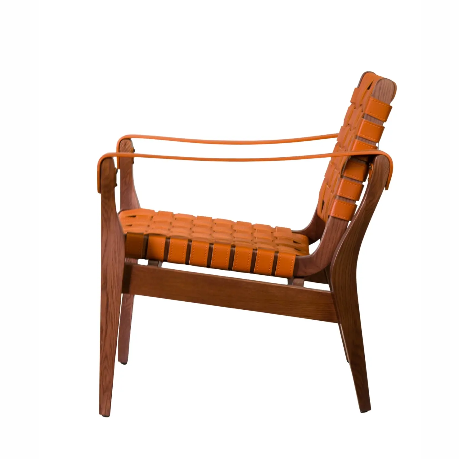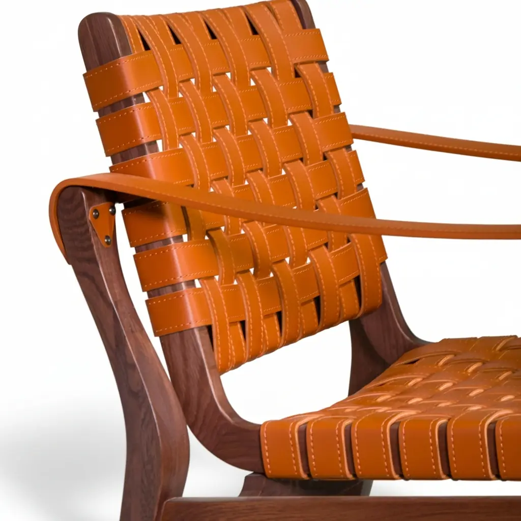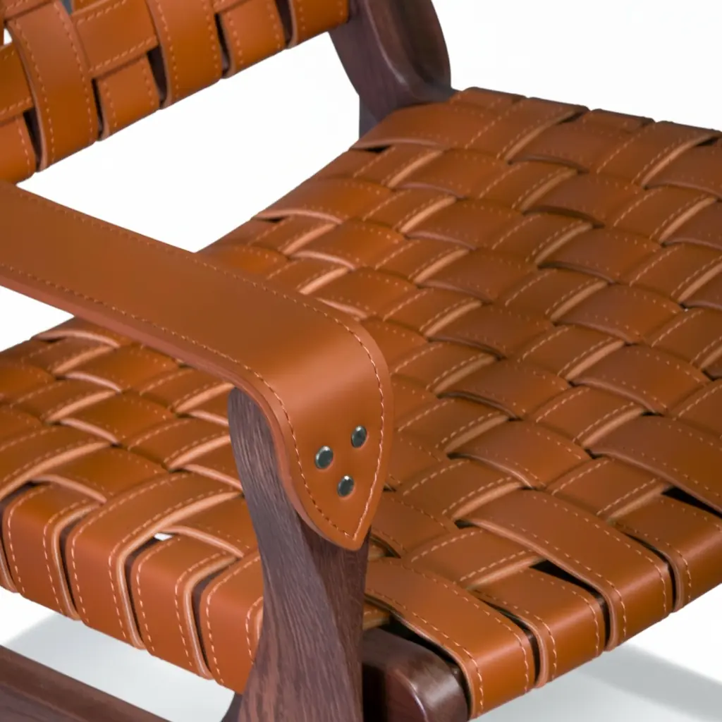 Ghế thư giãn SP18121 – tuyệt phẩm Scandinavian thủ công cao cấp, nơi gỗ tần bì tự nhiên nguyên khối gặp gỡ lớp da yên ngựa lưới đan tay camel quyến rũ. Mỗi sợi da được đan chặt chẽ, tạo mặt ngồi thoáng mát, ôm sát cơ thể, mang lại cảm giác êm ái, thoải mái tối đa dù ngồi hàng giờ.