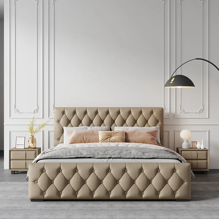 Giường ngủ bọc da chần nút kim cương SP13915 là mẫu giường mang phong cách hoàng gia hiện đại, kết hợp giữa vẻ đẹp xa hoa và sự tinh tế chuẩn Âu Châu. Từng đường nét được chăm chút tỉ mỉ, đặc biệt là phần tựa đầu và đuôi giường chần nút kim cương tạo hiệu ứng thẩm mỹ nổi khối sang trọng, nâng tầm toàn bộ không gian phòng ngủ.
