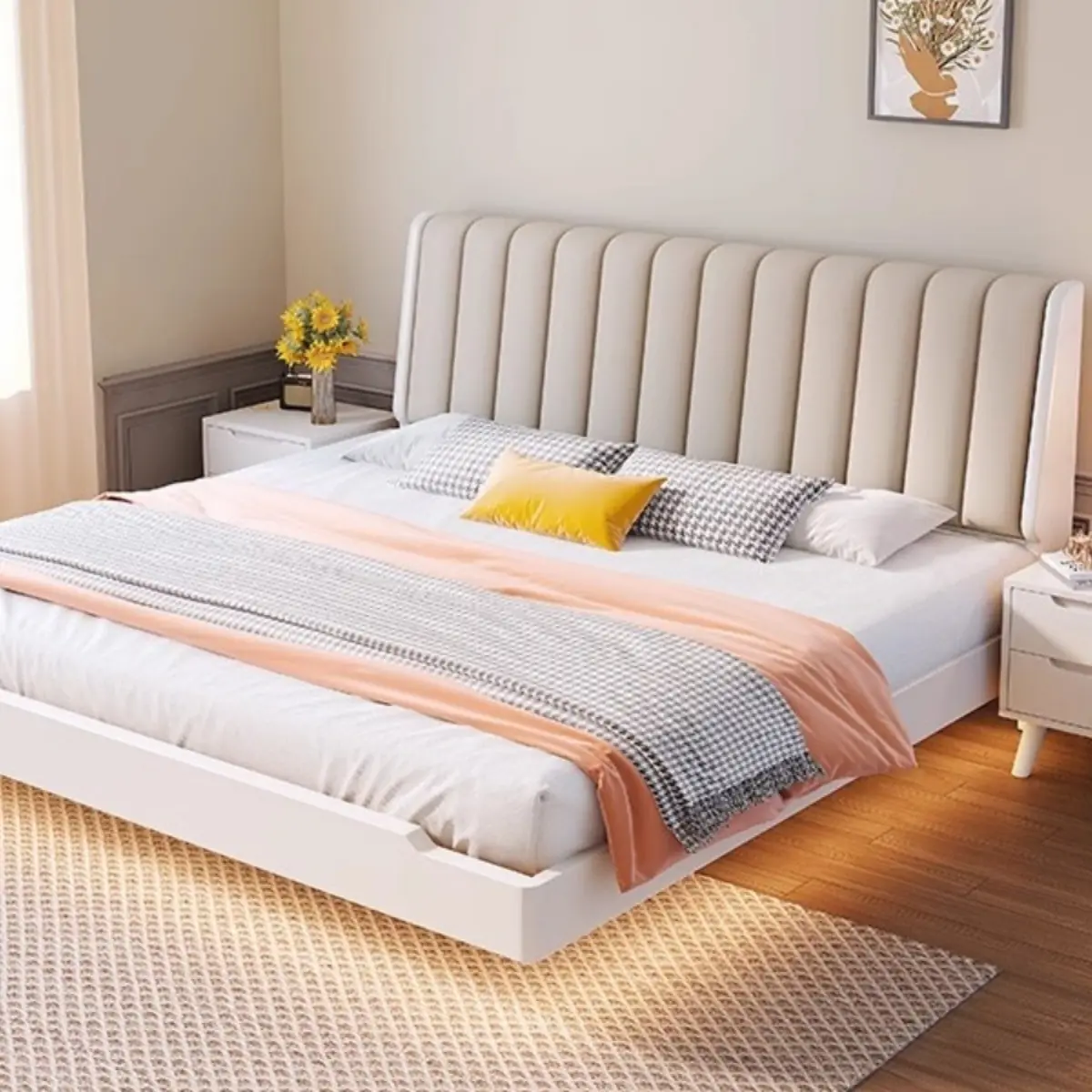 Giường Ngủ Bọc Da Đầu Rãnh Đứng Cao Cấp – Thiết Kế Phẳng Sang Trọng, Hiện Đại & Tinh Tế