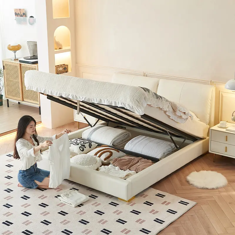 Giường sử dụng da PU cao cấp với bề mặt mềm mịn, độ đàn hồi tốt, chống nứt gãy và dễ lau chùi trong quá trình sử dụng. Đây là dòng vật liệu được ưa chuộng nhờ khả năng giữ form đẹp, màu sắc bền và phù hợp với khí hậu Việt Nam.