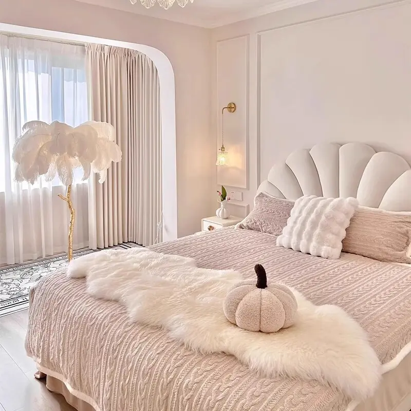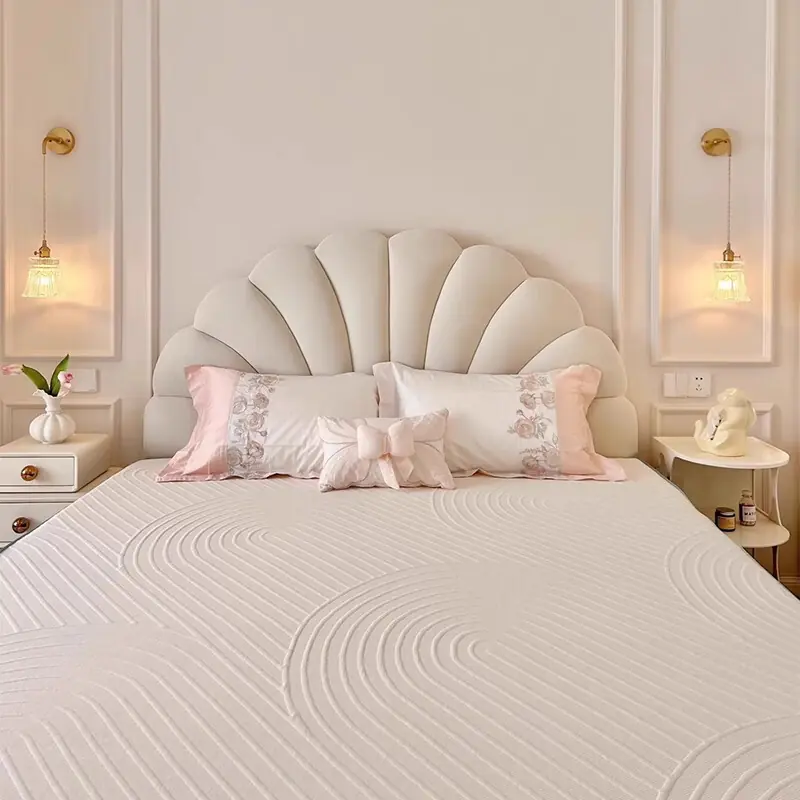 ✅ Đầu giường sò điệp độc đáo: Thiết kế mô phỏng vỏ sò 3D tạo hiệu ứng thị giác ấn tượng, giúp chiếc giường trở thành tâm điểm của căn phòng.