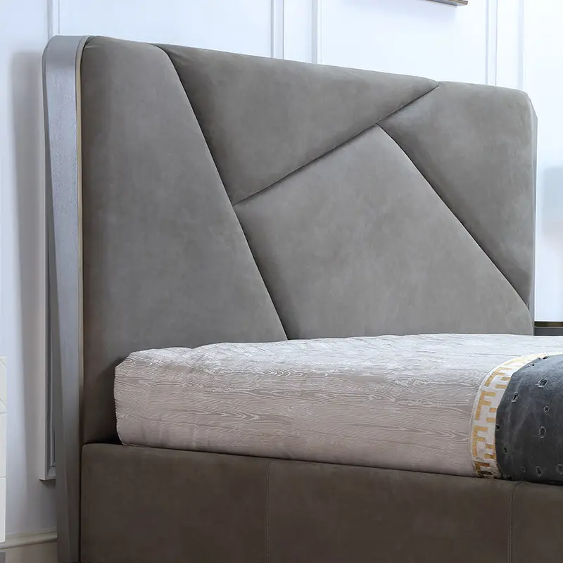 Phần đầu giường được thiết kế cao, bọc nỉ dày và mềm mại, tạo điểm tựa êm ái khi đọc sách, xem tivi hay thư giãn trước khi ngủ. Các đường tạo hình tinh tế trên đầu giường mang đến nét hiện đại, giúp sản phẩm không bị đơn điệu mà vẫn giữ được sự thanh lịch cần thiết.