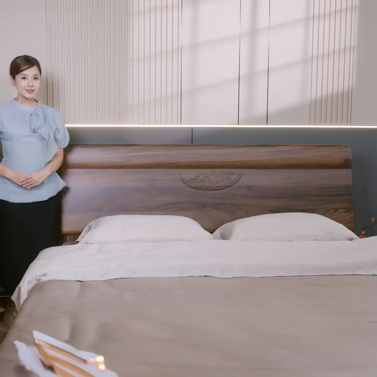 Form giường thiết kế theo phong cách hiện đại, tối giản nhưng tinh tế. Các cạnh giường được bo cong mềm để tăng độ an toàn và thẩm mỹ. Toàn bộ bề mặt gỗ được xử lý kỹ, phủ lớp sơn PU cao cấp giúp màu sắc bền đẹp và chống ẩm hiệu quả. Kích thước tiêu chuẩn 1m8 × 2m (hoặc thay đổi theo yêu cầu) phù hợp đa dạng diện tích nội thất phòng ngủ.