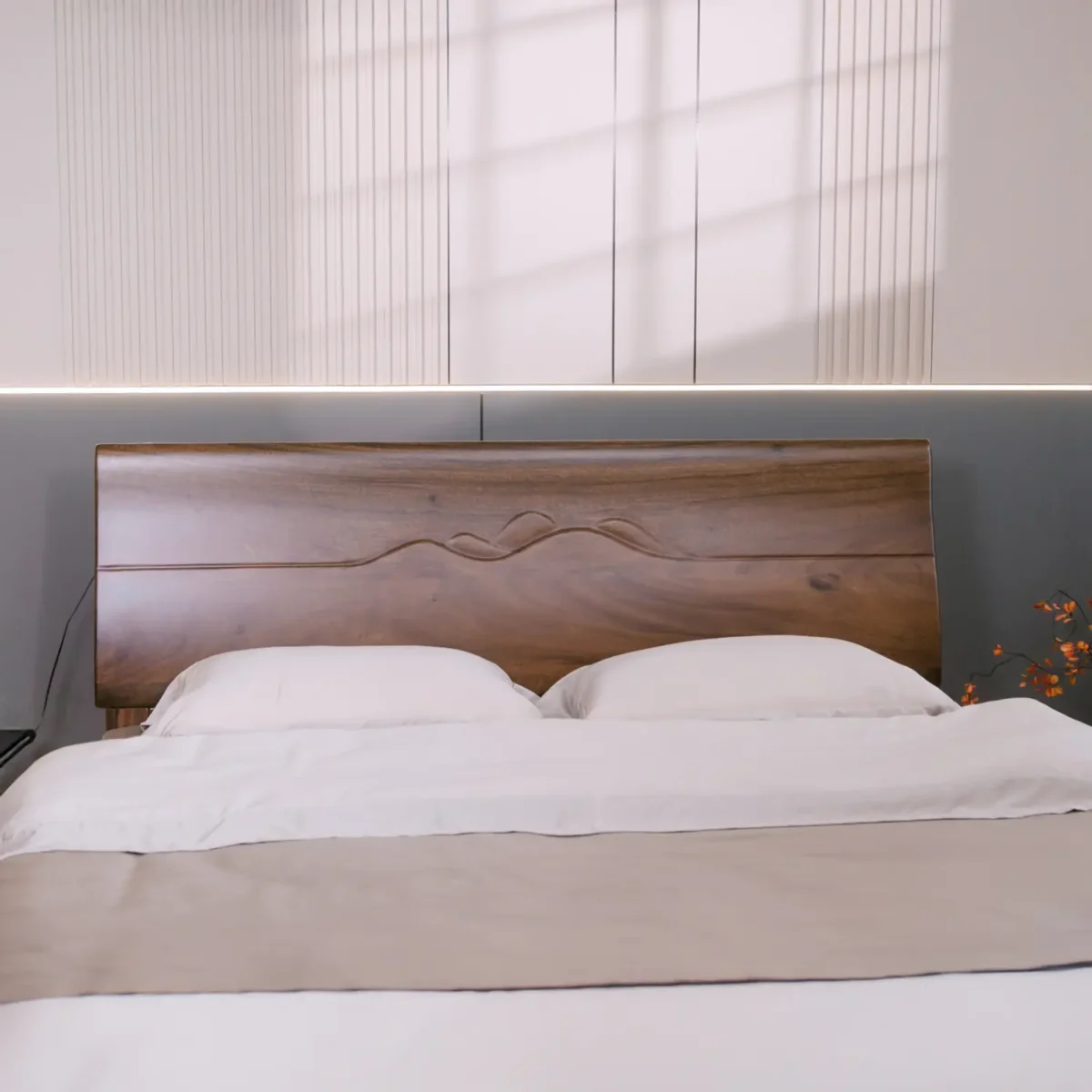 Màu gỗ óc chó nâu trầm là điểm nhấn quan trọng tạo nên vẻ đẹp ấm áp, sang trọng. Khi kết hợp với tủ quần áo, bàn trang điểm hay tủ tab đầu giường đồng bộ, không gian phòng ngủ sẽ trở nên hài hòa, đẳng cấp và rất dễ chịu.