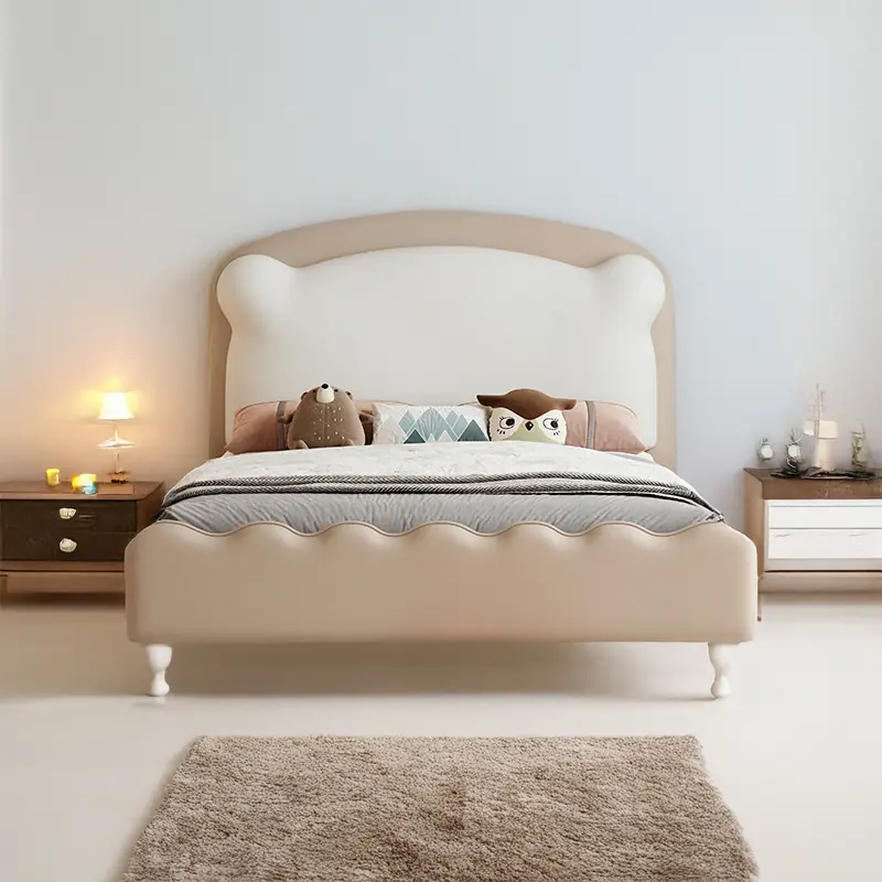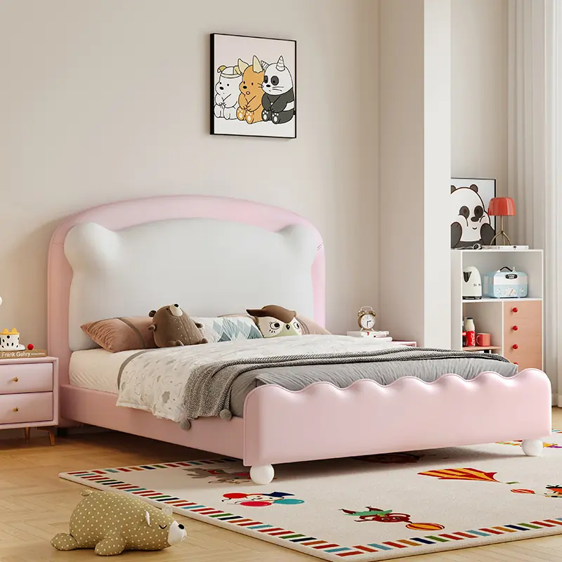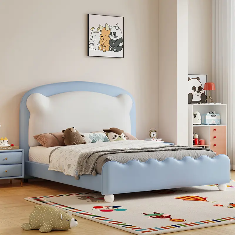 Giường Ngủ Trẻ Em Bọc Da Đầu Giường Bo Cong Dễ Thương – Êm Ái & An Toàn