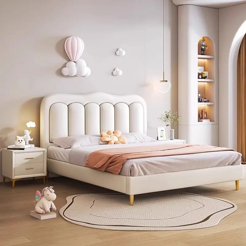Mẫu giường ngủ trẻ em phấn múi mang phong cách hiện đại – thanh lịch, tạo cảm giác êm ái và dễ chịu cho không gian nghỉ ngơi của bé. Thiết kế đầu giường phấn múi bo tròn mềm mại giúp tổng thể chiếc giường trở nên gọn gàng, tinh tế và rất phù hợp với sinh hoạt hằng ngày của trẻ nhỏ.