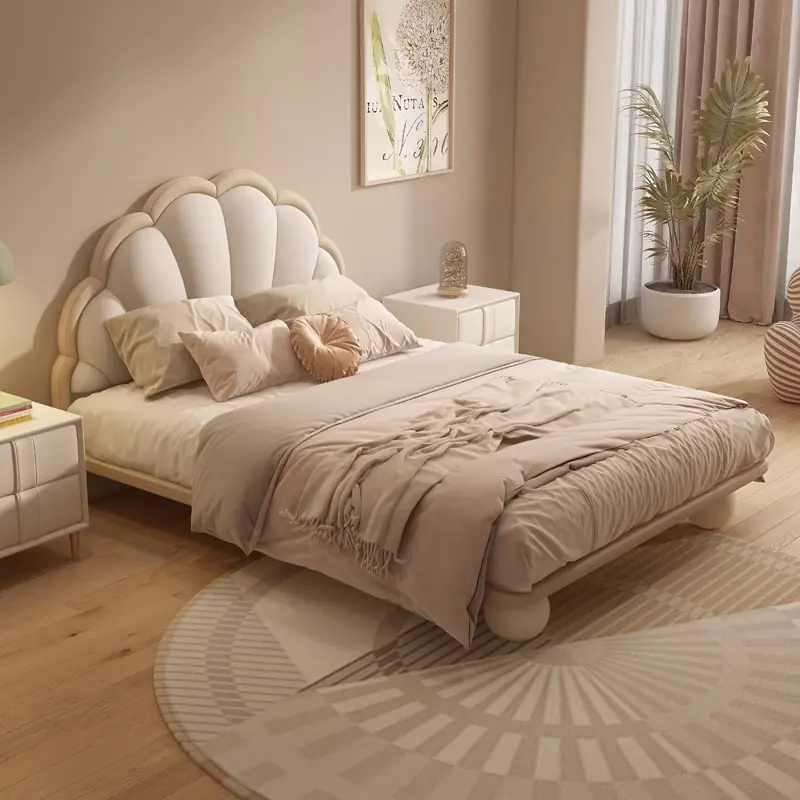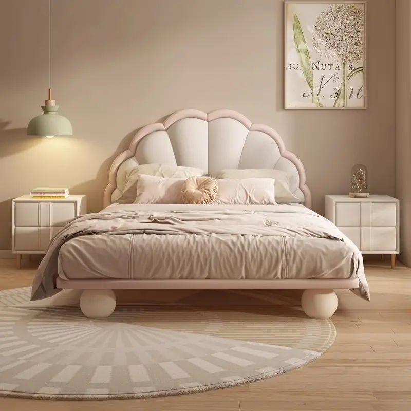 Tông màu trắng kem phối hồng pastel mang lại cảm giác ấm áp, dịu mắt, dễ dàng phối hợp với nhiều phong cách trang trí khác nhau. Đây là lựa chọn lý tưởng cho các gia đình đang tìm kiếm giường ngủ trẻ em có thiết kế đẹp, sử dụng bền lâu theo thời gian.