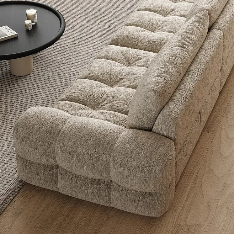 Tổng thể sofa sở hữu form bo tròn mềm mại, các khối đệm liền mạch tạo nên đường nét hài hòa, không góc cạnh thô cứng. Gam màu trung tính trang nhã giúp sofa dễ dàng phối hợp với nhiều phong cách nội thất khác nhau, từ căn hộ chung cư hiện đại đến phòng khách nhà phố mang phong cách tối giản – contemporary.