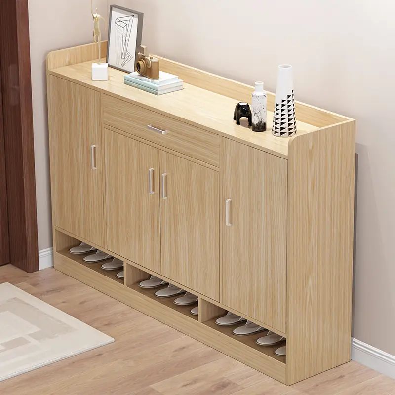 Bố cục thông minh: 4 cánh mở chia thành nhiều tầng kệ thông thoáng, giúp bạn sắp xếp giày dép theo loại: giày thể thao, giày công sở, giày trẻ em… Ngăn kéo trên rộng rãi để đựng các vật dụng cần thiết khi ra ngoài. Mặt tủ có viền chắn giữ đồ trang trí luôn cố định.